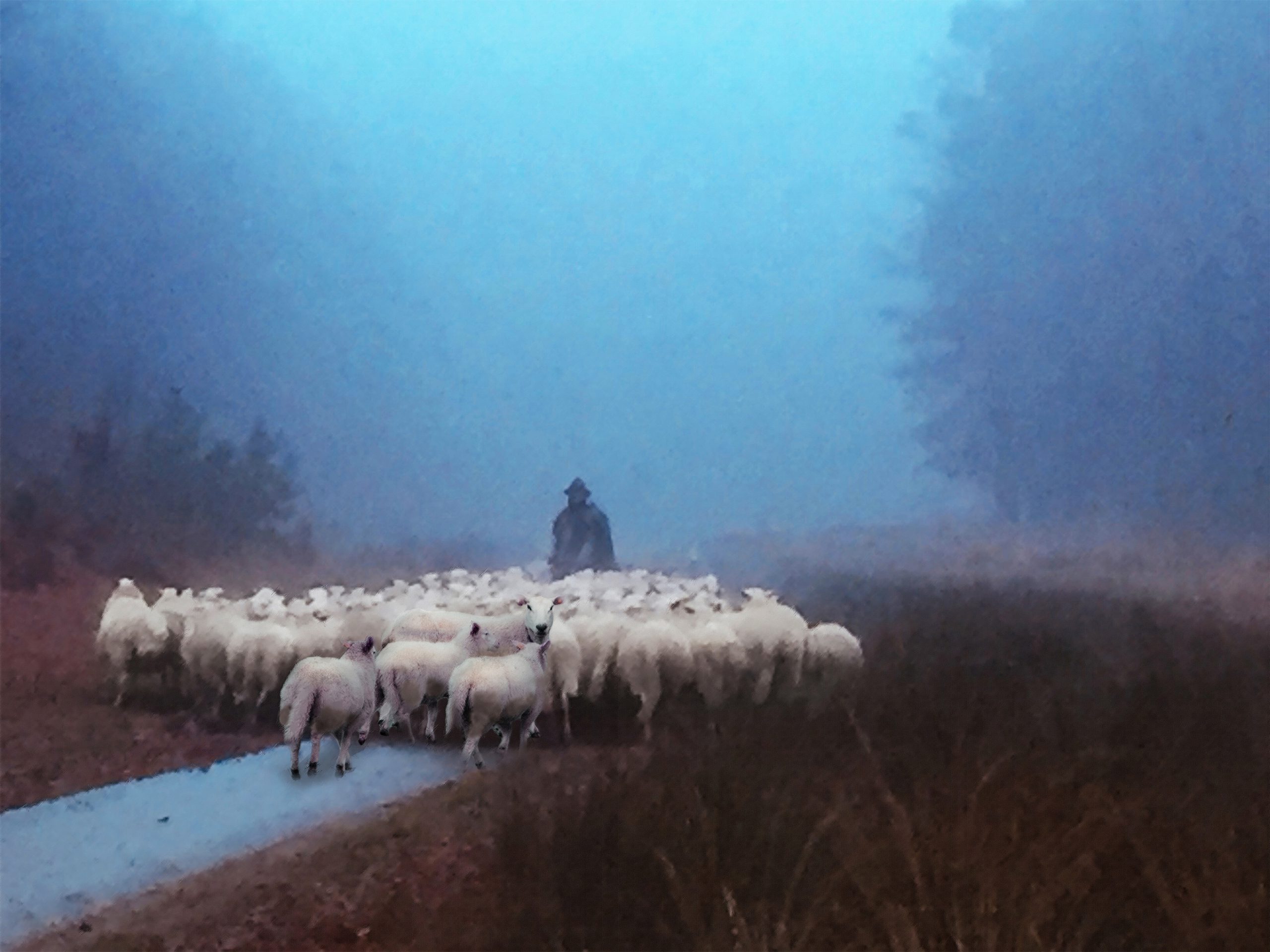Schapen in de mist